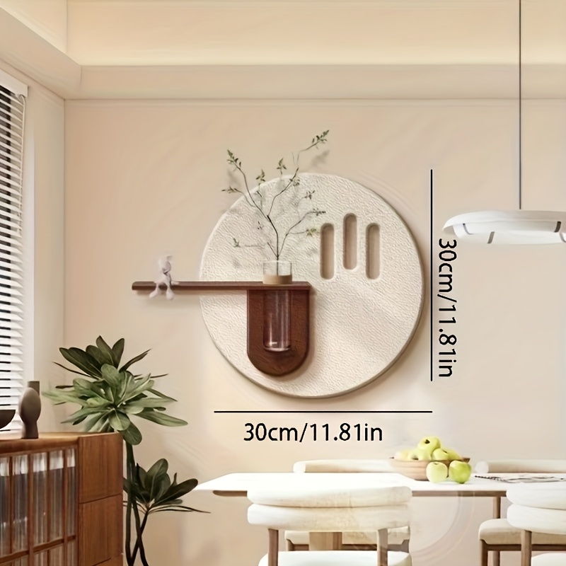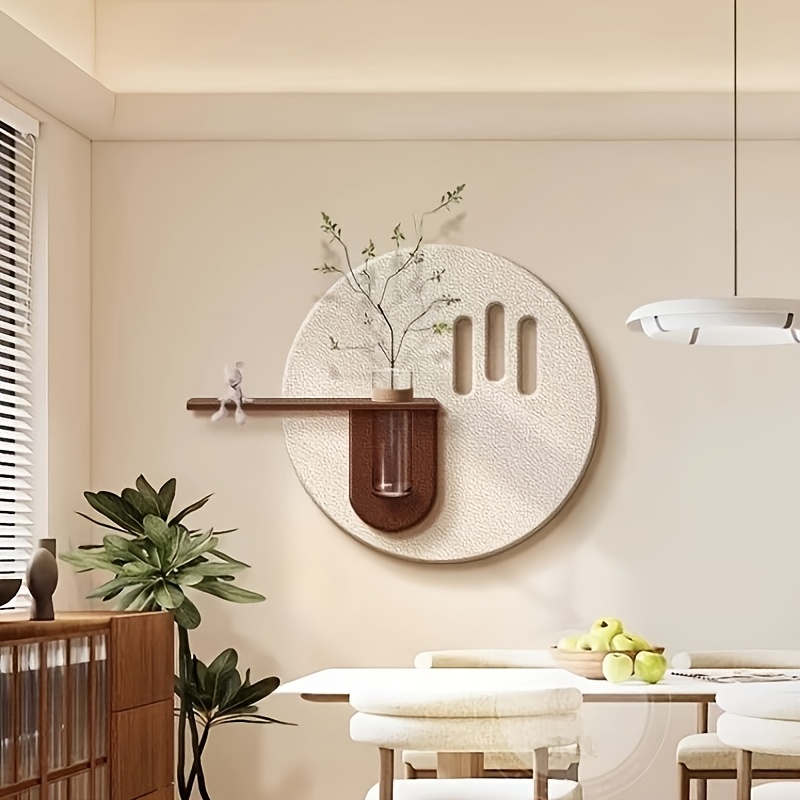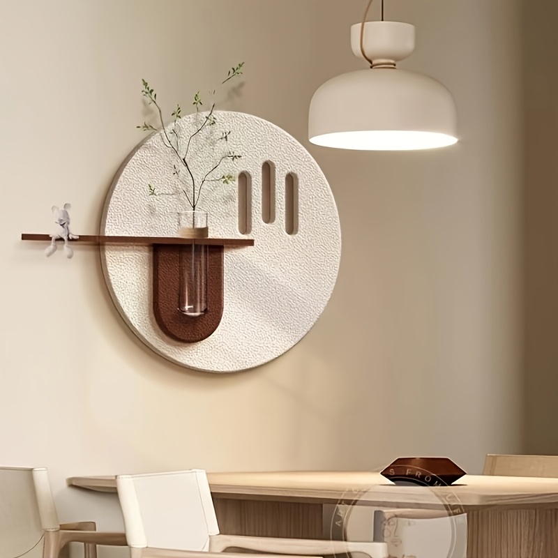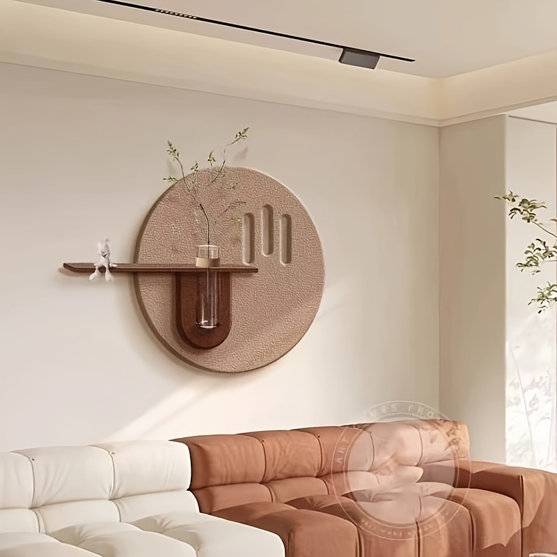 Modern 3D Sandstone Wall Art - Bohemian Style Cream Background with Green Plant